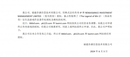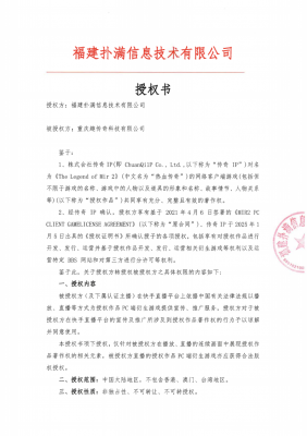 福建撲滿信息技術有限公司注冊地位于福建省福州市,是國內《熱血傳奇》客戶端游戲獨占性版權人。對《熱血傳奇》客戶端游戲擁有全部版權,并有權基于版權權利進行該游戲維權。株式會社傳奇IP (以下簡稱傳奇IP )對《The Legend of Mir 2》(中文名為“熱血傳奇"、或“傳奇”、“傳奇2”、“MIR II”)游戲(以下稱為 “授權作品”) 共同享有充分、完整且有效的著作權。經傳奇IP授權 , RENAISSANCE INVESTMENT MANAGEMENT LIMITED (以下簡稱 RENAISSANCE Ltd.)有權在中國大陸地區獨占性地對授權作品的網絡客戶端游戲進行開發、 發行、管理、宣傳、推廣和運營,針對授權作品的侵權游戲及侵權方,RENAISSANCE Ltd.有權采取必要的措施,并有權將前述權利分授權給第三人。福建撲滿信息技術有限公司經RENAISSANCE Ltd.授權,獲得上述權利,有權在中國大陸地區獨占性地對授權作品的網絡客戶端游戲進行開發、發行、管理、宣傳、推廣和運營,并有權對侵權行為/主體采取維權措施。